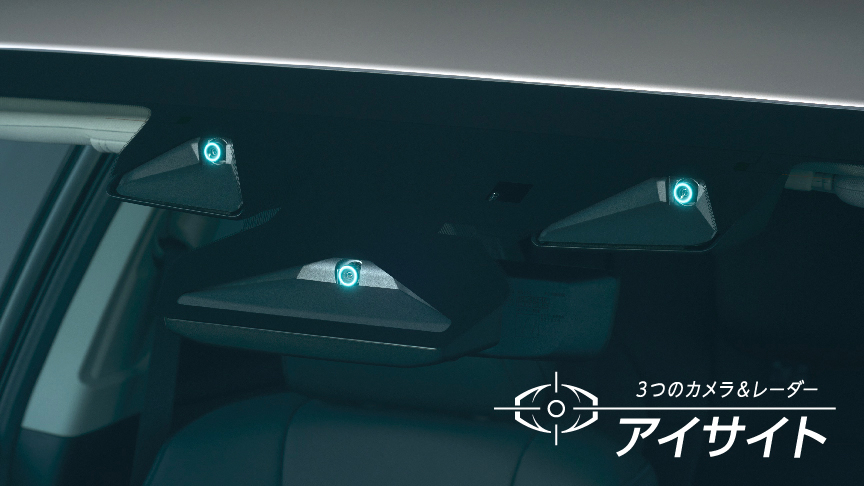 従来のレヴォーグに採用されている安全装備に加え、新たにアイサイトが3眼に進化しました。