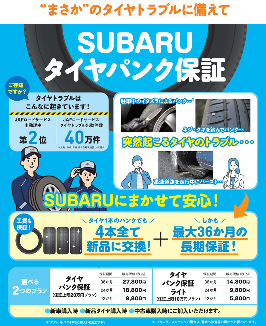 タイヤ購入時にはこちらもおススメ!タイヤパンク保証