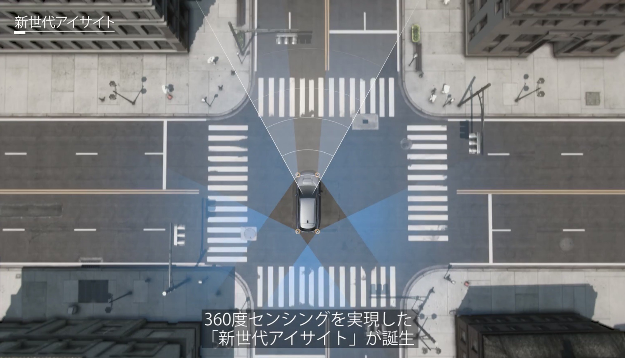 アイサイト独自のステレオカメラに加え、前後左右4つのレーダーでカメラの死角をカバーすることで、360度センシングを実現しました。