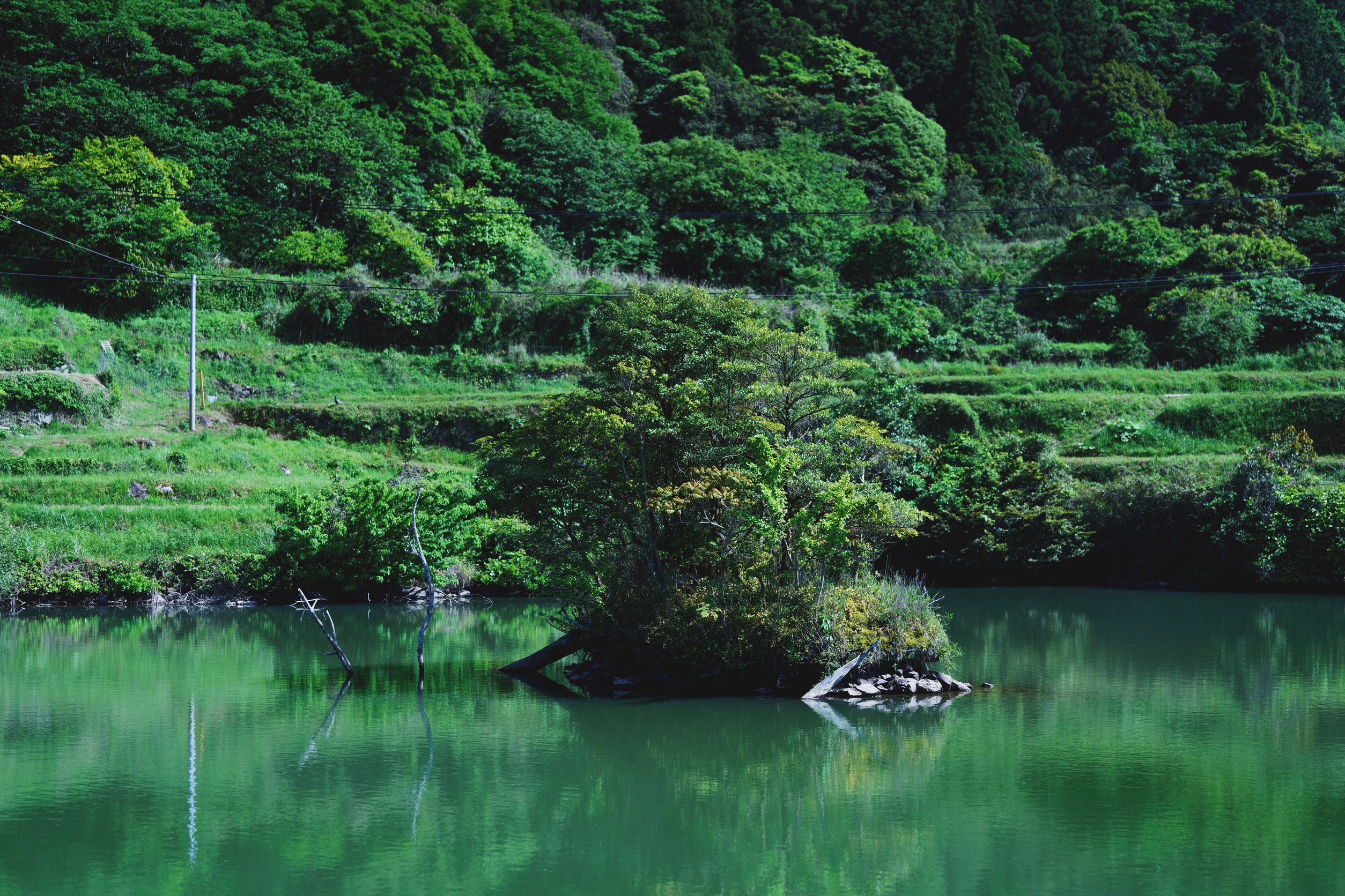 真ん中の島が少しジブリ映画のような雰囲気を出していて素敵なため池でした。