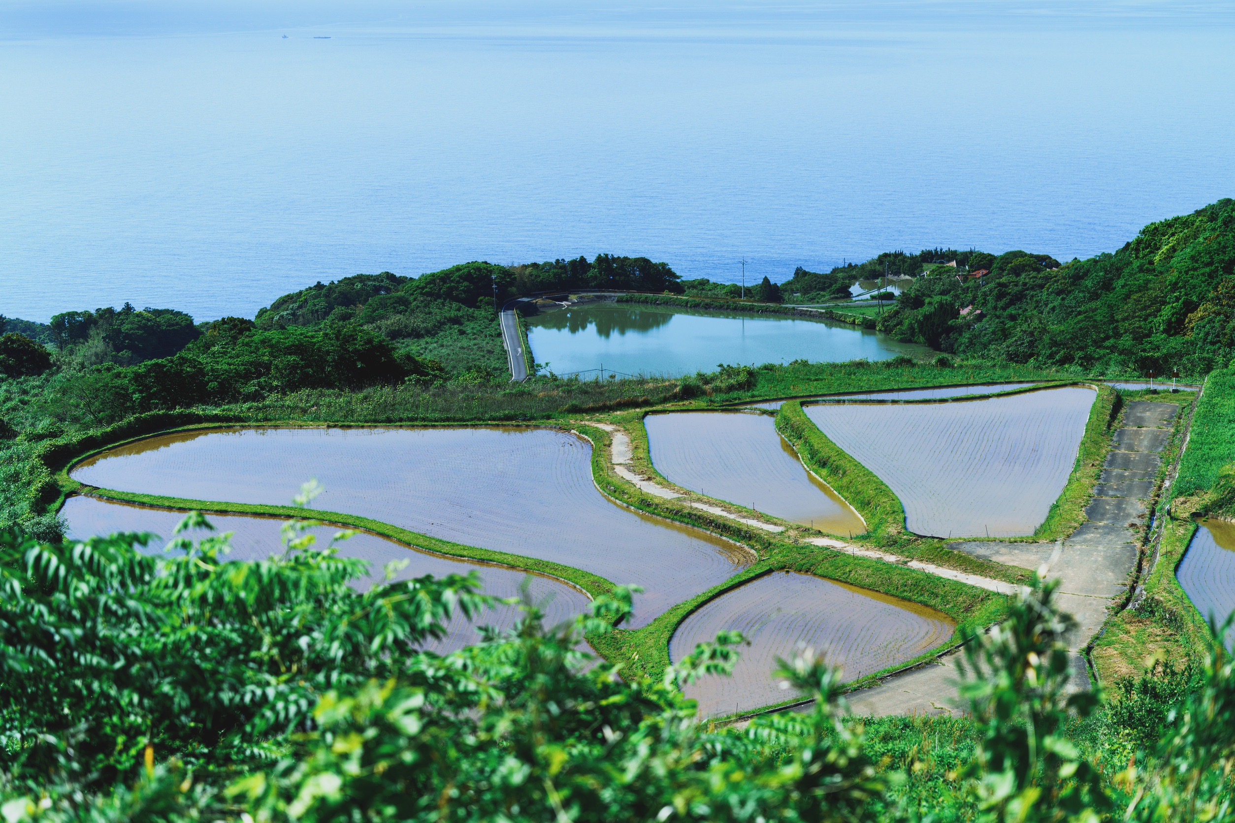 この棚田がある向津具半島の丘陵地が海岸近くまで迫っているため、このような海を望む棚田になったとのこと。