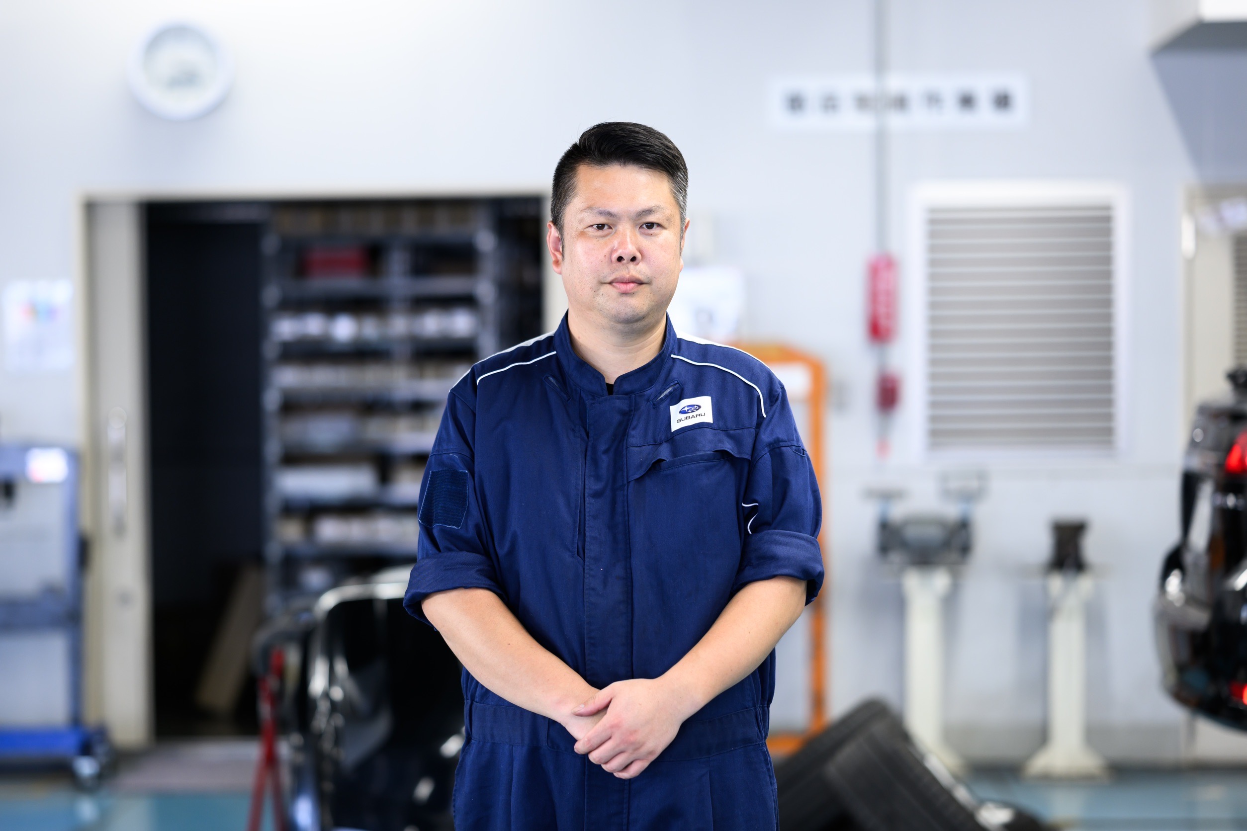 大型店舗である福山店のチーフサービスエンジニアとして、ベテラン・若手が多くいるなかリーダーとしてまとめていただいています。また、長年工場長をされているので、知識量・技量は広島スバルの中でもトップレベルだと感じます。