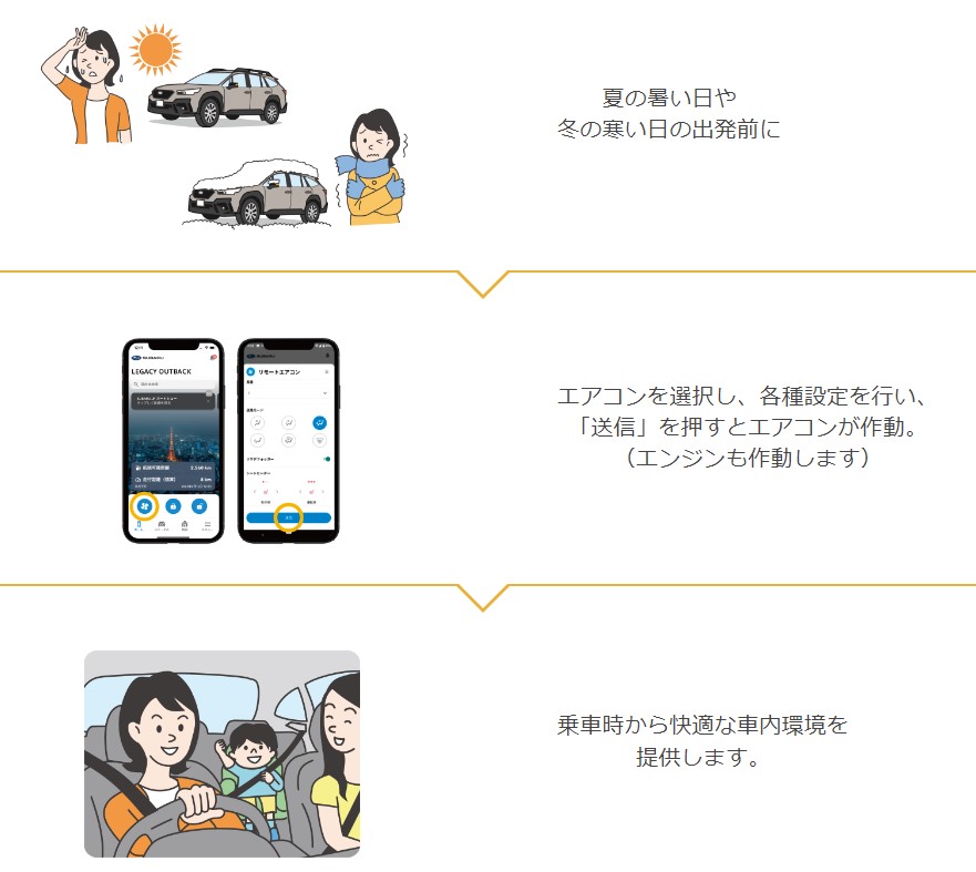スマホから簡単におクルマのエアコンがかけられるようになります。
