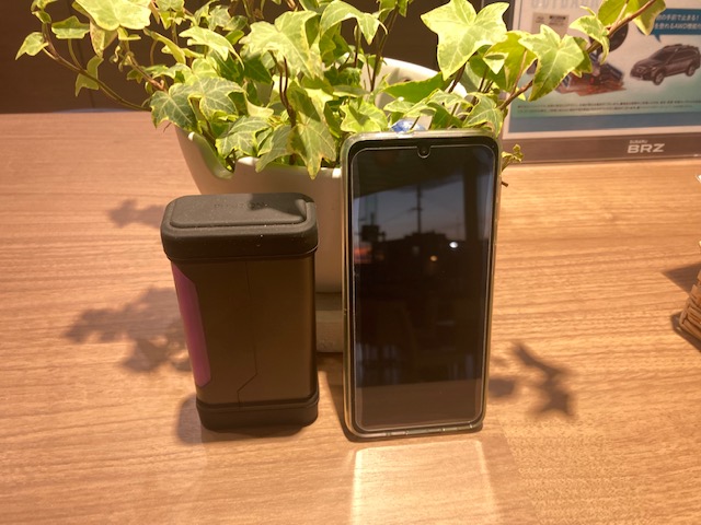 まずはこのコンパクトなボディ、ご覧ください。スマートフォンと並べてもこのサイズです。