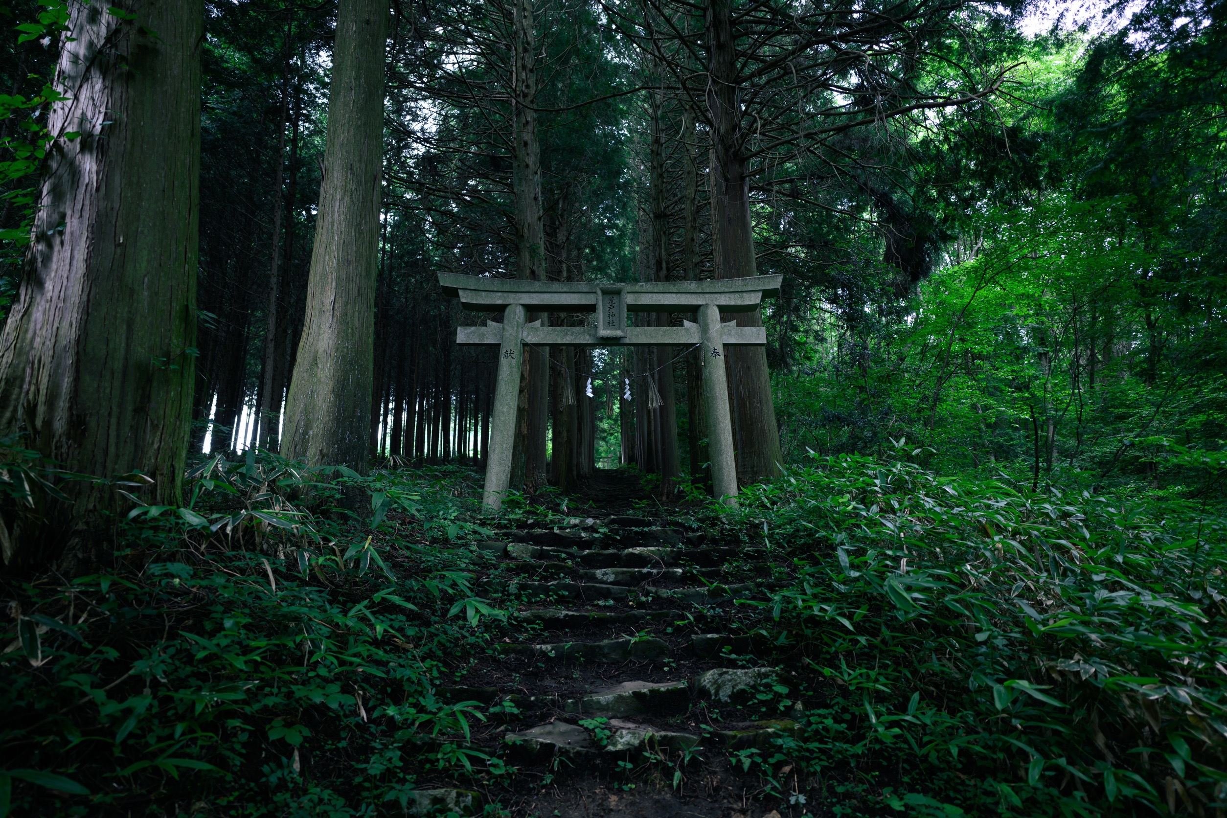 荒戸神社は水の神を奉っており、その参道には樹齢150年以上の杉並木が続いており、周囲の景観を特徴づけています。