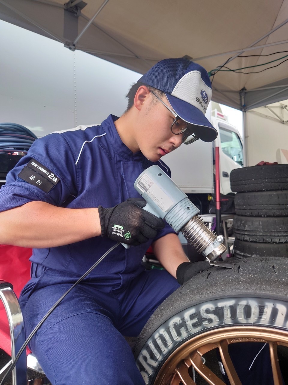 普段の業務と違い、整備の正確さに加えスピードを求められるという環境下での作業プレッシャーと緊張感が心地よく、お客様の車の整備とは違った達成感を得ることができた4日間(練習日を含め)でした。