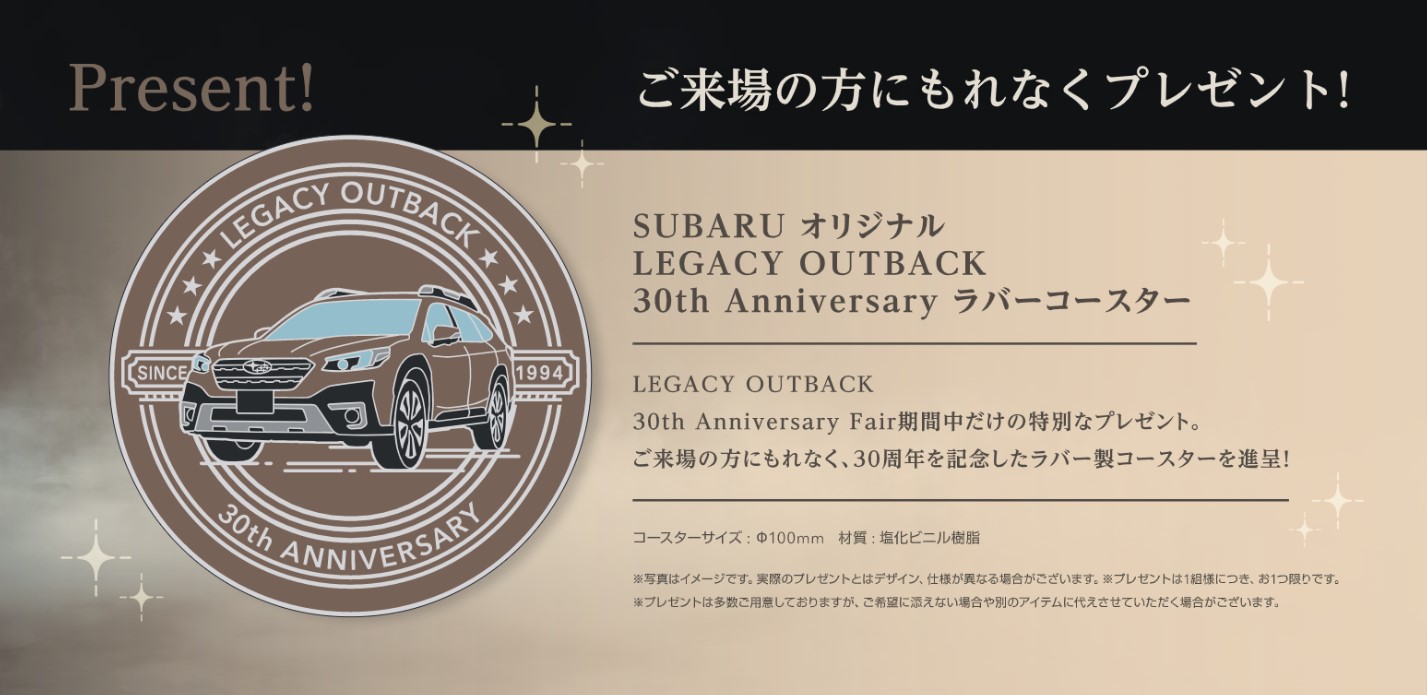 ちなみに、今週と来週は、LEGACY OUTBACK 30th Anniversary Fairを開催中です。