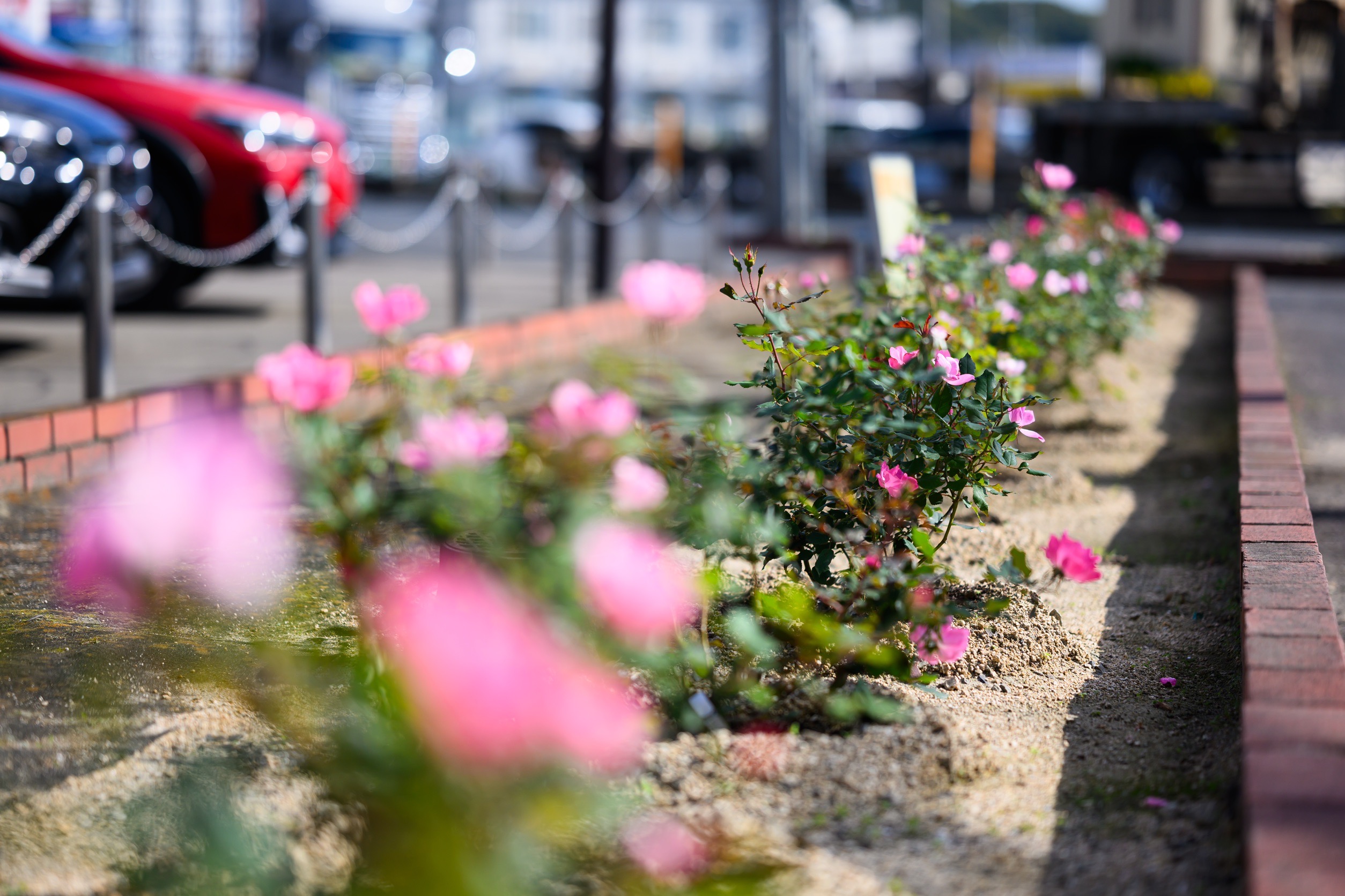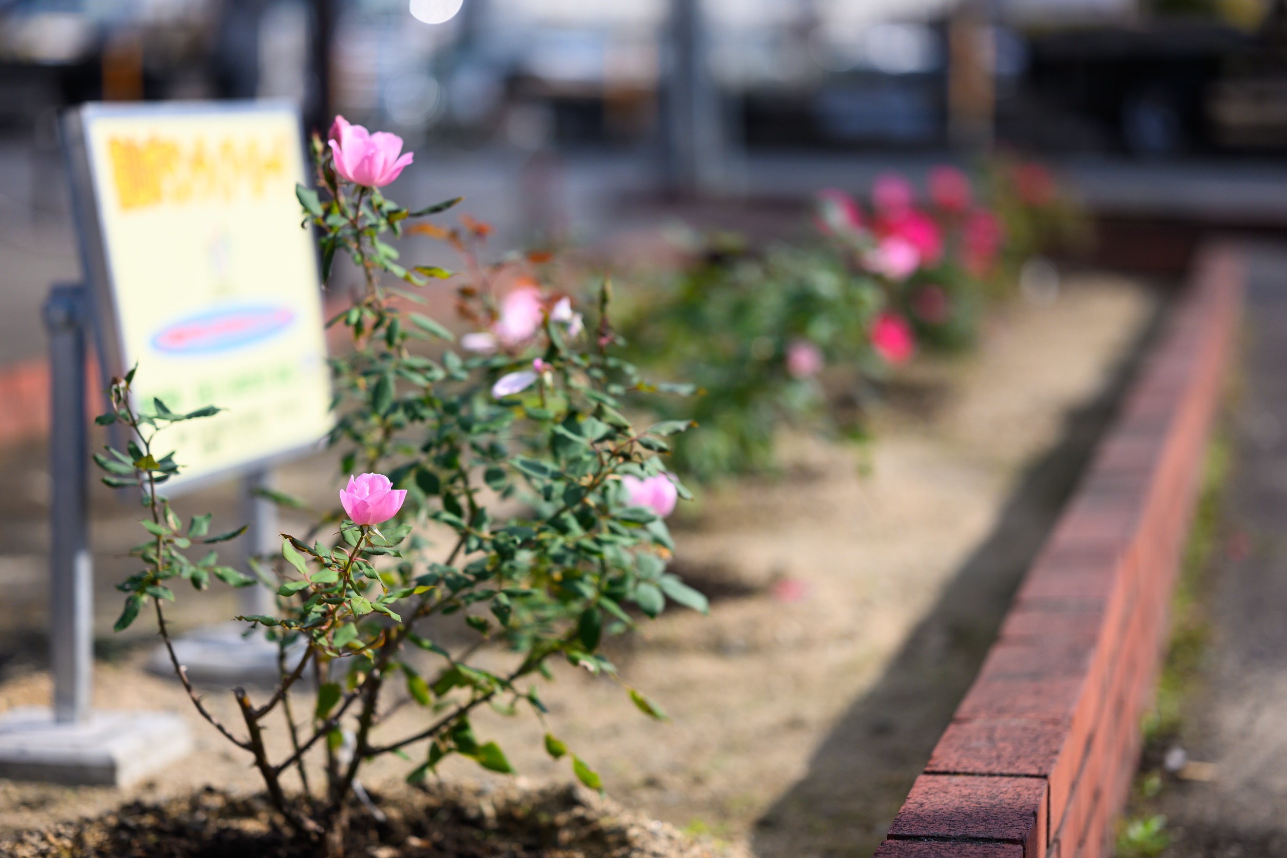 このたび福山店では、令和7年5月に開催される「世界バラ会議福山大会2025」に向け、国道2号における都市景観の整備をより一層進めるため、福山市の協力のもと、店舗に隣接する植栽にバラを植樹いたしました。