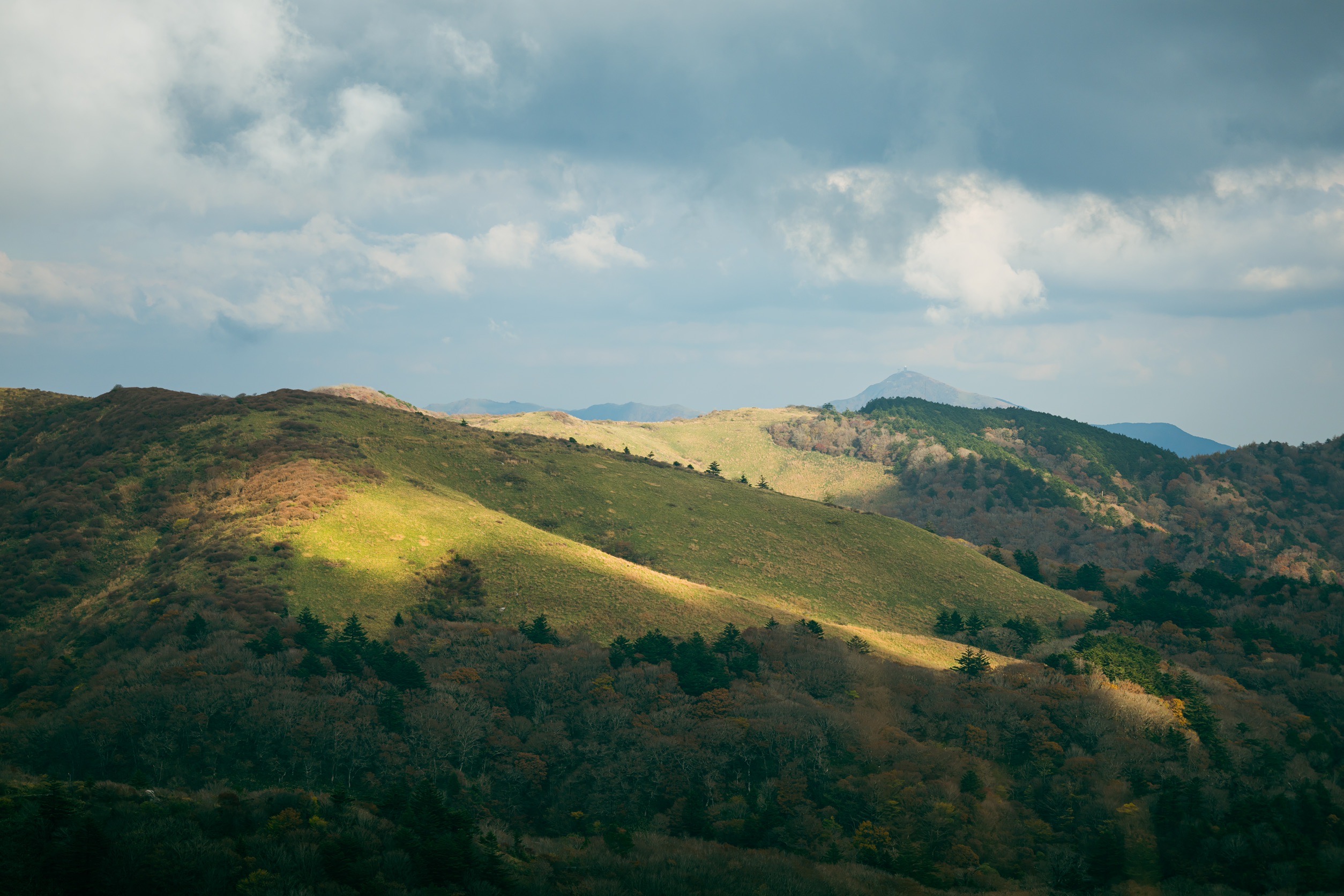 標高1,400mを越えたあたりから、笹で覆われた緑の草原が広がっています。