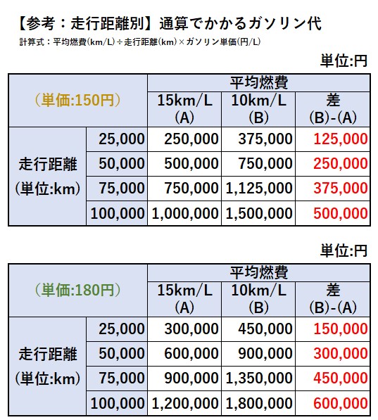 そこで、今回は燃費だけにフォーカスし、実際に燃費が5km/L変わると、ガソリン代はどれくらい節約できるのか・・・