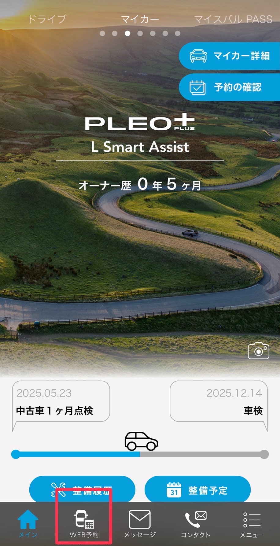 また、次回の点検が分からない場合は、メイン画面に表示されている”次回の整備“をご確認ください。