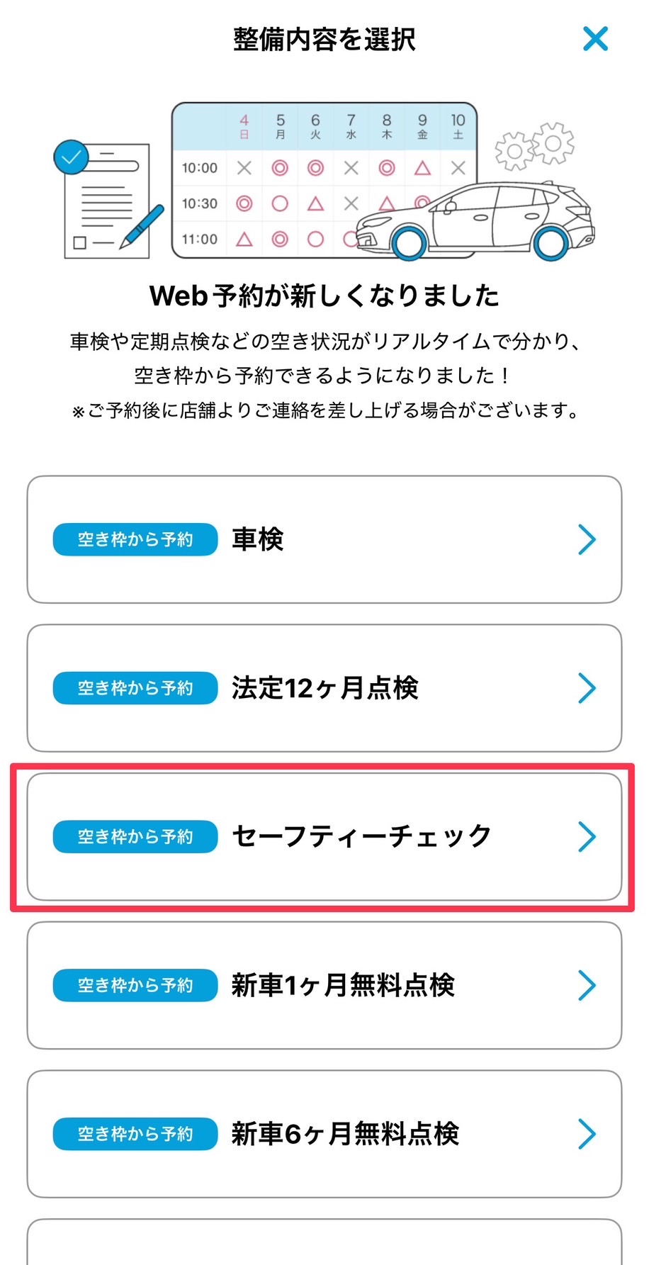 今回は、2025年9月25日(木)10時にセーフティチェックを予約する場合の手順をご紹介いたします。