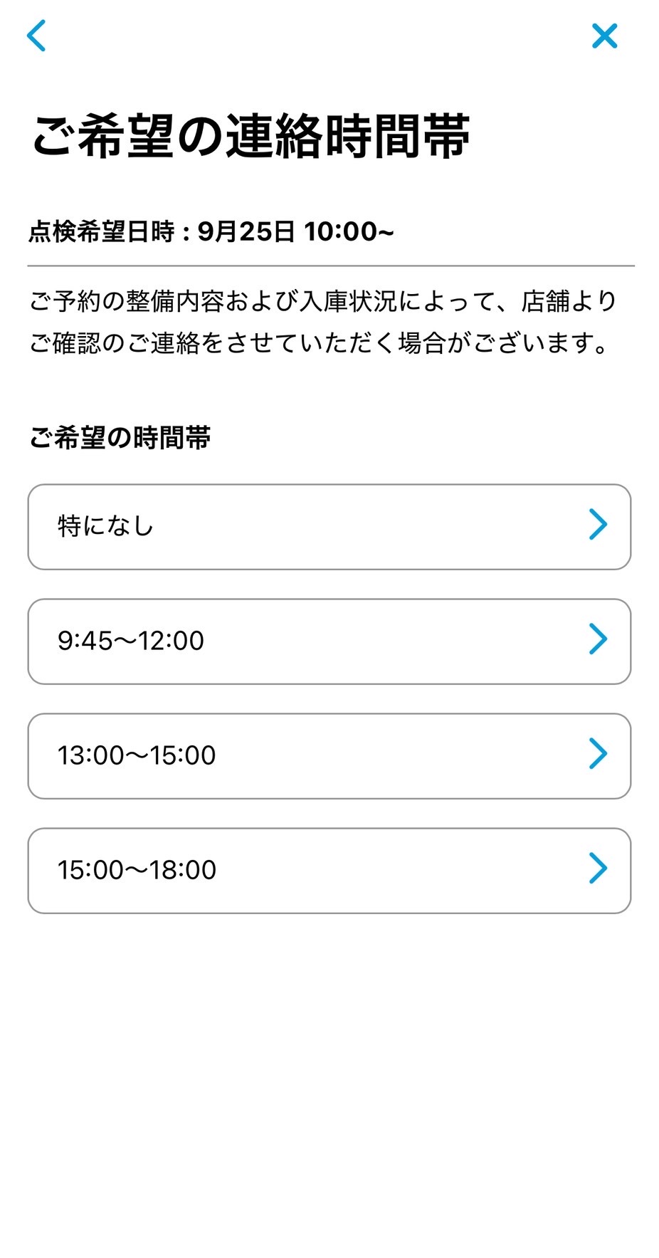→前述したように、点検内容によってはスタッフからご連絡差し上げる場合があるため、ご連絡がつきやすいお時間を選択してください。