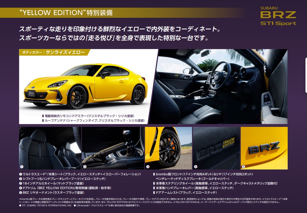 SUBARU BRZ STI Sportの特別仕様車「YELLOW EDITION」のご案内です。