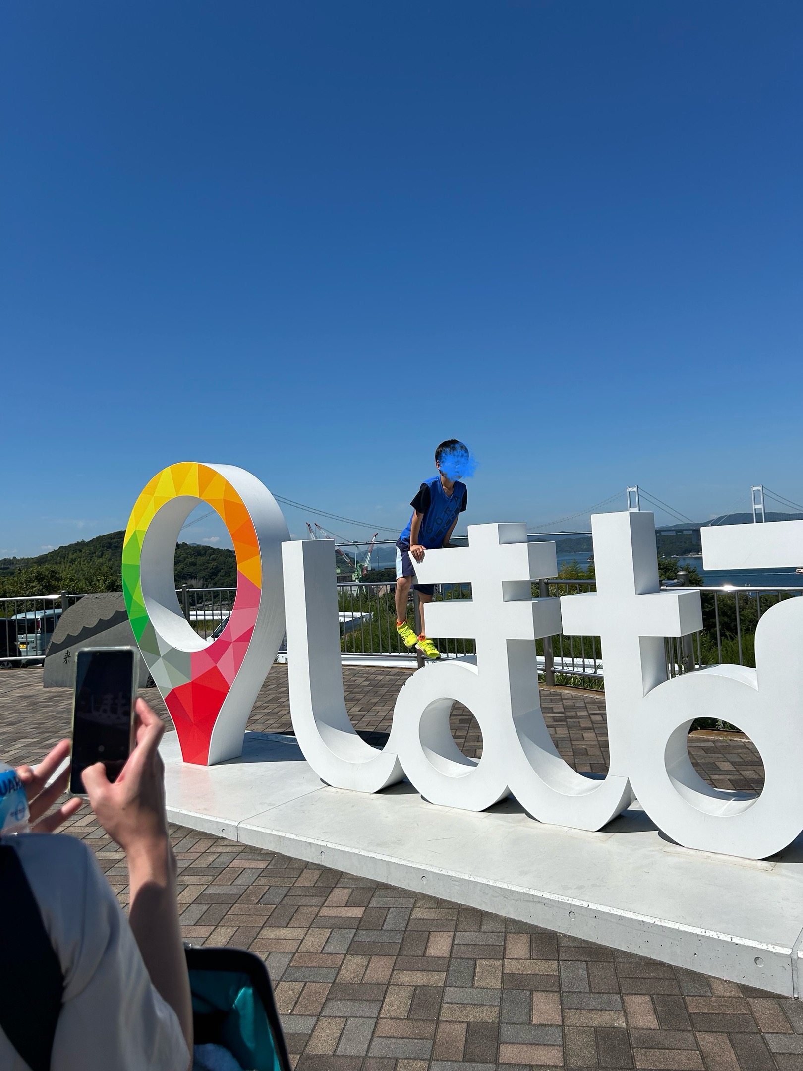 海をバックにオブジェの前でパシャり。