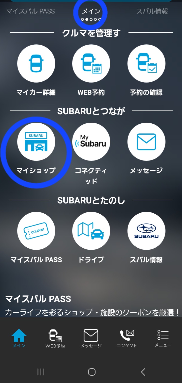すでにマイスバルにご登録いただいている方はマイスバル「メイン」ページ中段のメニュー内「マイショップ」から、もしくは「マイショップ」ページからクーポンをご確認いただけます。