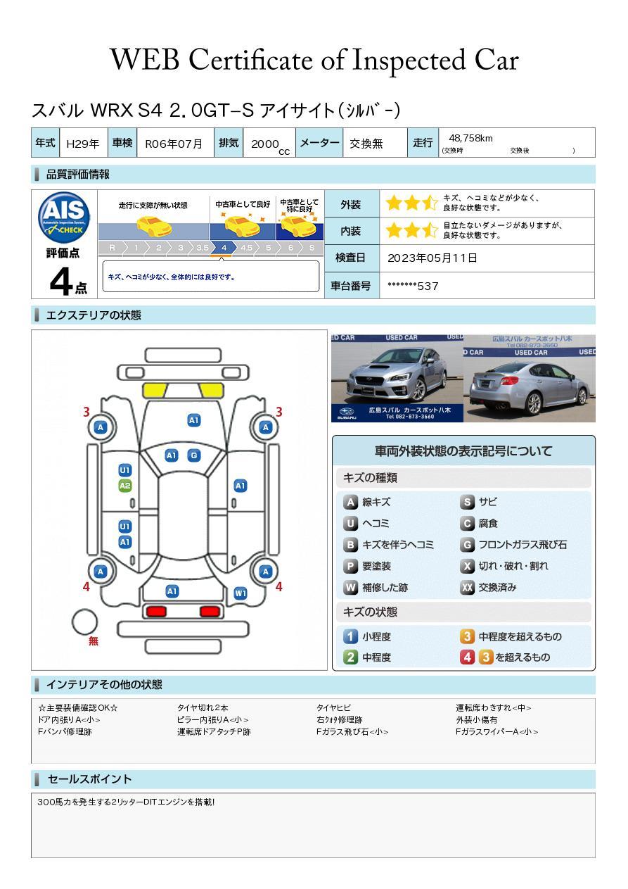 車両品質評価書です!評価点は4点と中古車としては良好となっております![]()