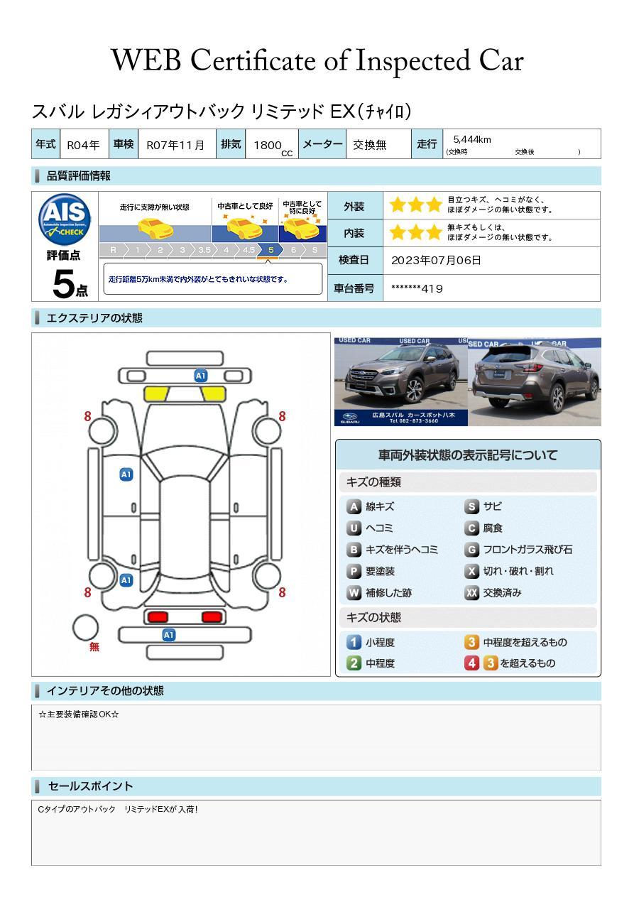 1800cc / 2022年式 / 5,444キロ / 4WD / アイサイトX搭載車