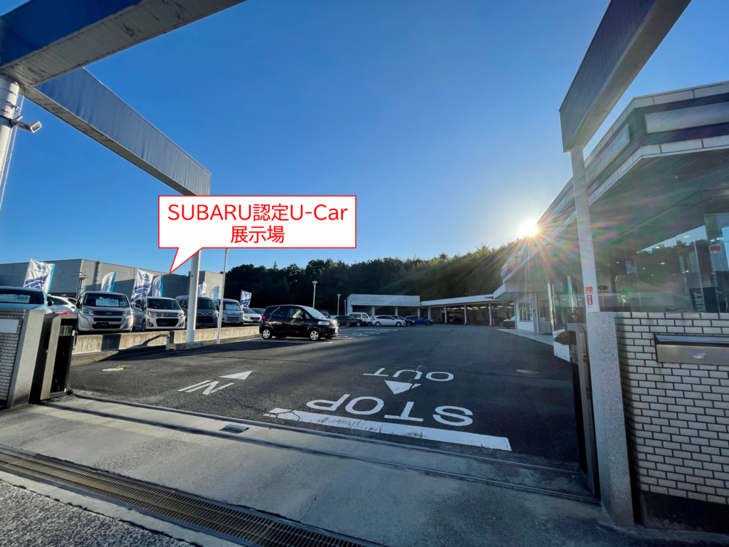 SUBARU認定U-Carは駐車場入口から左側に展示しております
