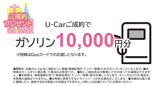 U-Car(中古車)限定ではございますが、ご成約プレゼントもご用意しております!