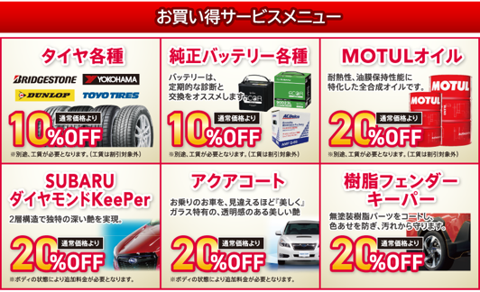 記念フェア期間中は、タイヤやバッテリーなどを特別特価でご提供しております。