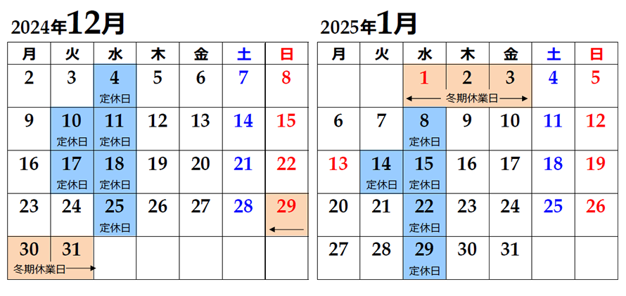 本日は年末年始期間中の休業日についてご案内いたします![]()