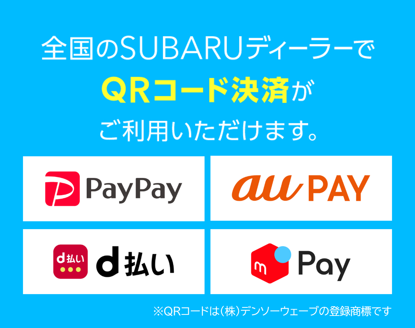 QRコード決済は、中古車販売店を含む全国のSUBARUディーラーでご利用いただけます。