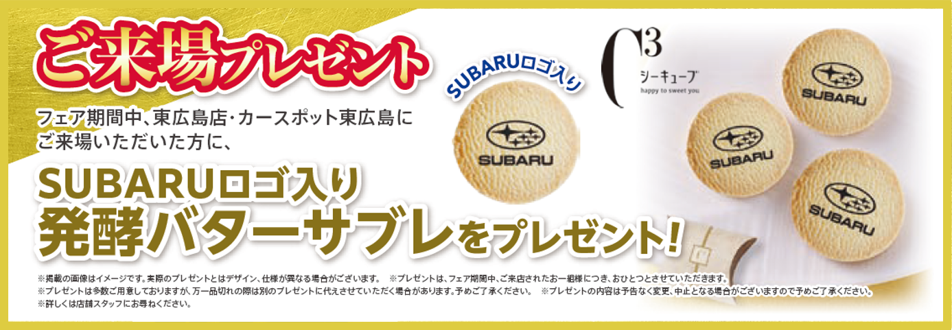 フェア期間中、東広島店・カースポット東広島へご来場いただきましたみなさまに、ささやかなおもてなしとしてバターサブレをプレゼントいたします🎁