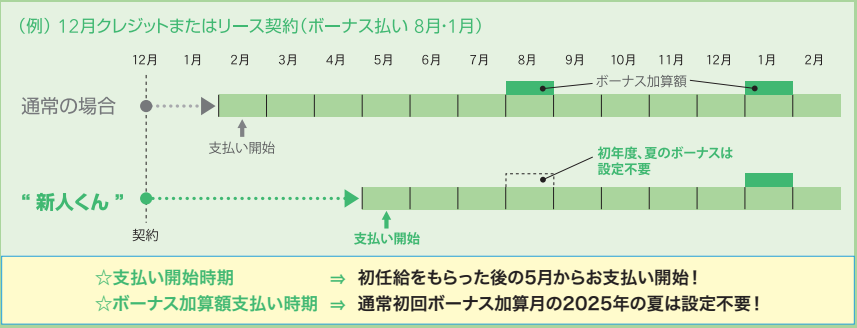 しかし、「新人くん」では初回のお支払いが5月から![]()