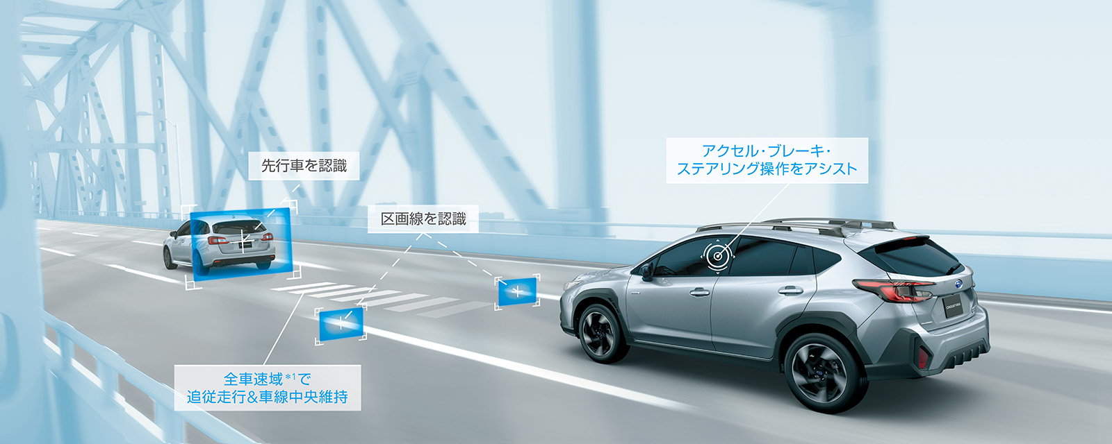 SUBARUの運転支援システム「アイサイト」には、高速道路や自動車専用道路でのアクセル・ブレーキ・ハンドル操作をアシストしてくれるツーリングアシスト」や