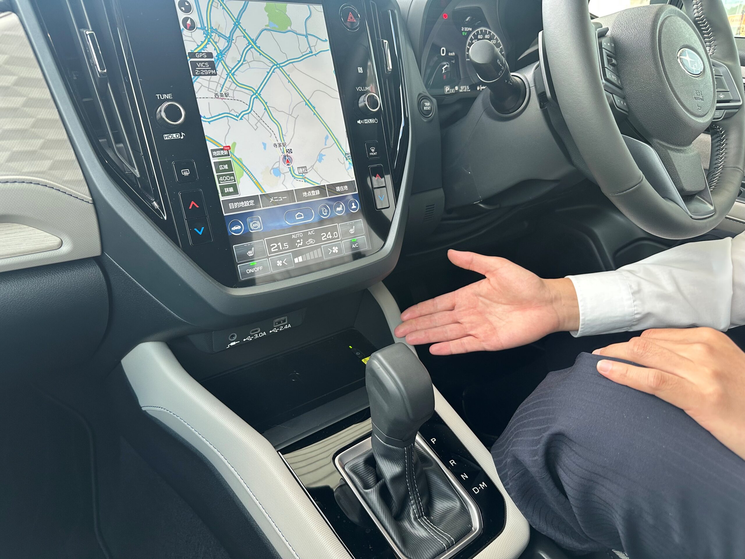 末田「その通り!ワイヤレスチャージャーです。このPremiumというグレードには標準で装着されています。」