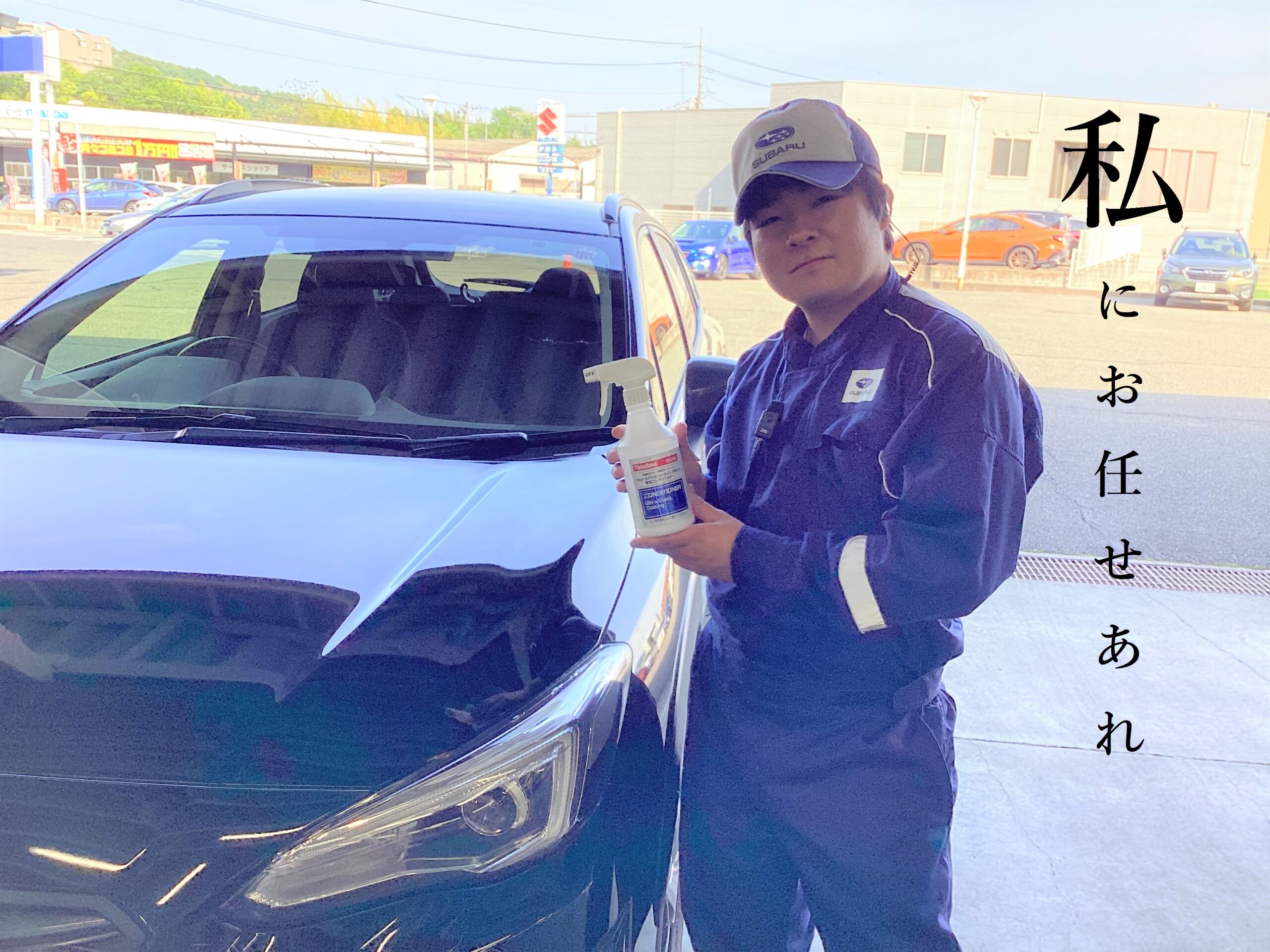 そば:『NE’Xプラスは、スバルでかけることができるガラス系コーティングと同じ成分の液剤を使用したボディコート剤となっており、コーティングをかけていらっしゃらないお車はもちろんのこと、軽自動車から普通車までジャンルを問わず、NE’Xプラスをかけることができます!!!』
