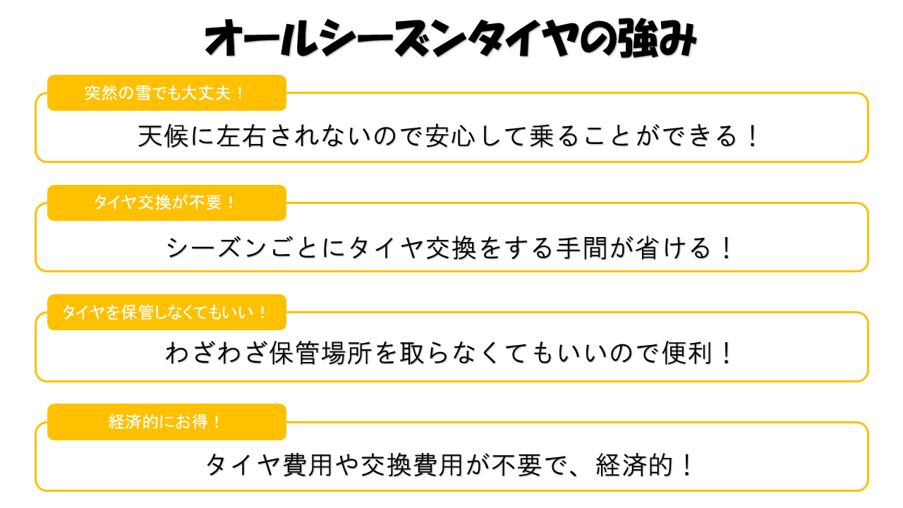 オールシーズンタイヤにはこれだけたくさんのメリットがあります!