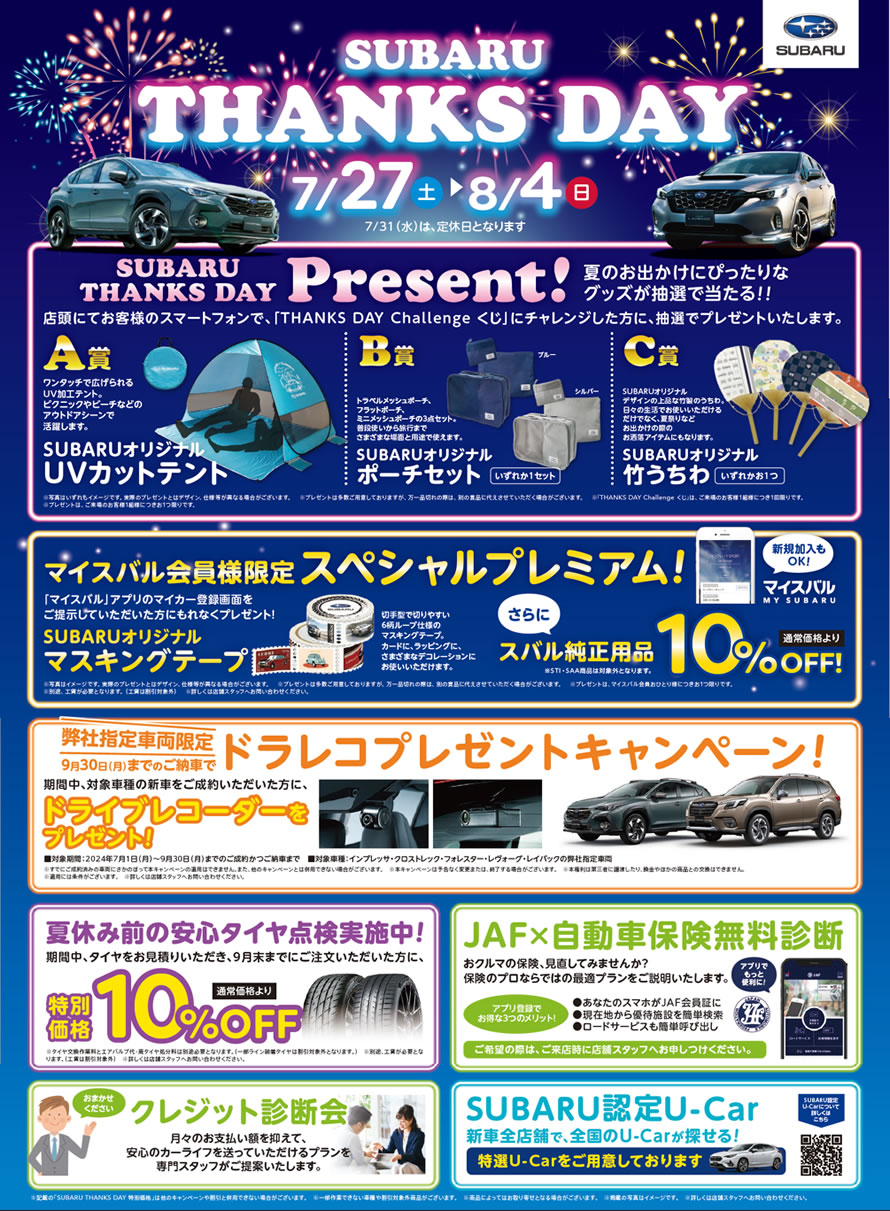 SUBARU THANKSDAY 』開催中です!!!!