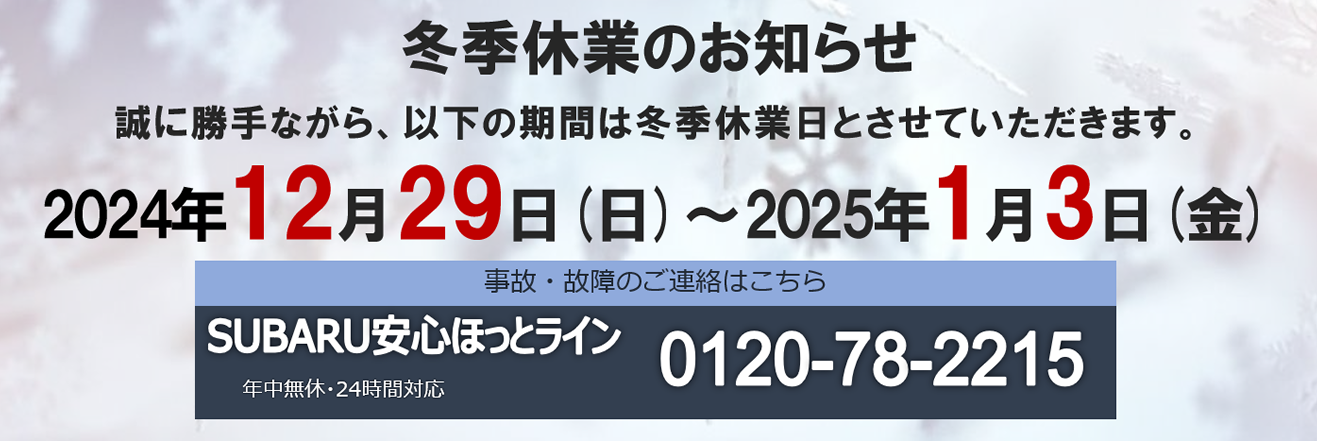 誠に勝手ながら下記の期間は冬季休業日とさせていただきます。