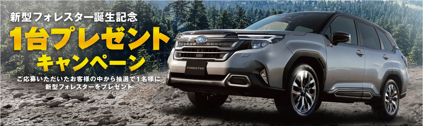 新型フォレスターの誕生を記念して、ご応募いただいた方の中から抽選で1名様に、新型フォレスター1台をプレゼントいたします!