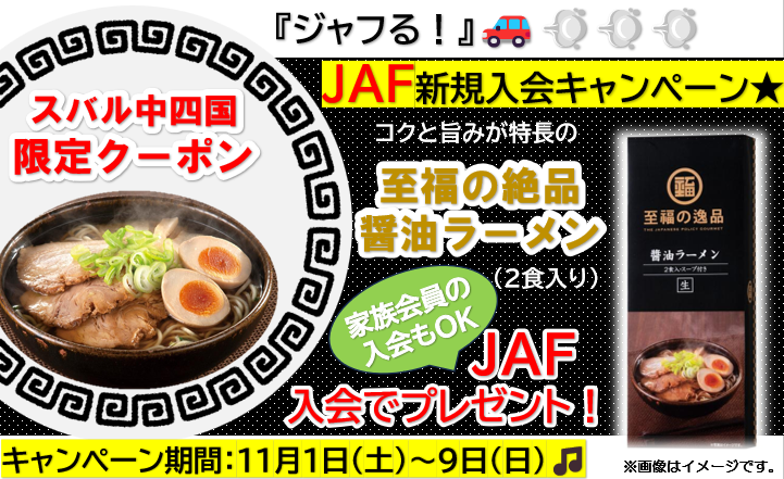期間中にJAFへご入会いただいた方には、ラーメンをプレゼント🍜🍜