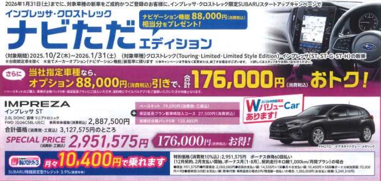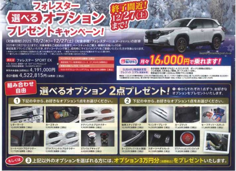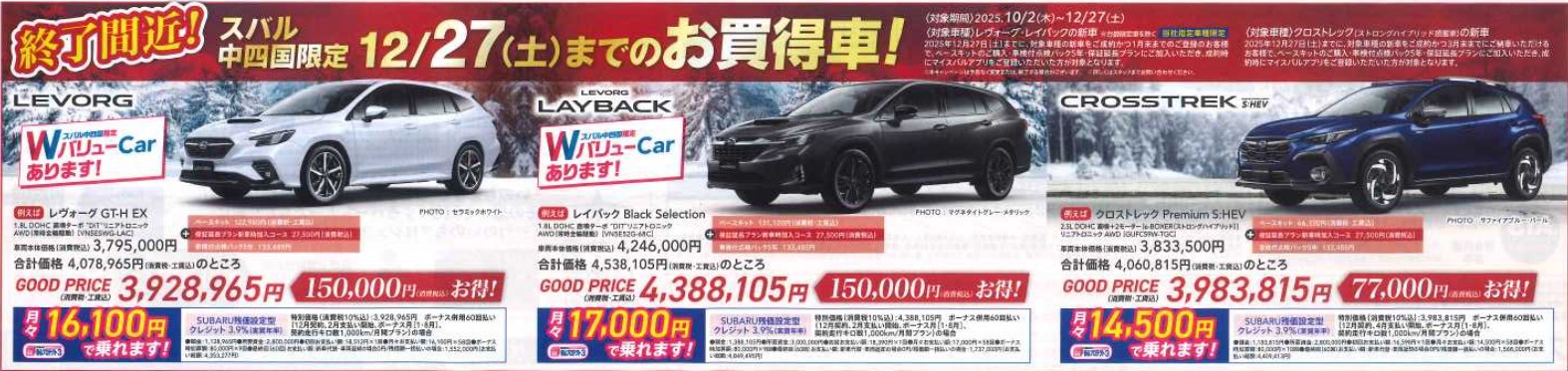 現在スバル中四国では冬の大商談会を開催中でございます。