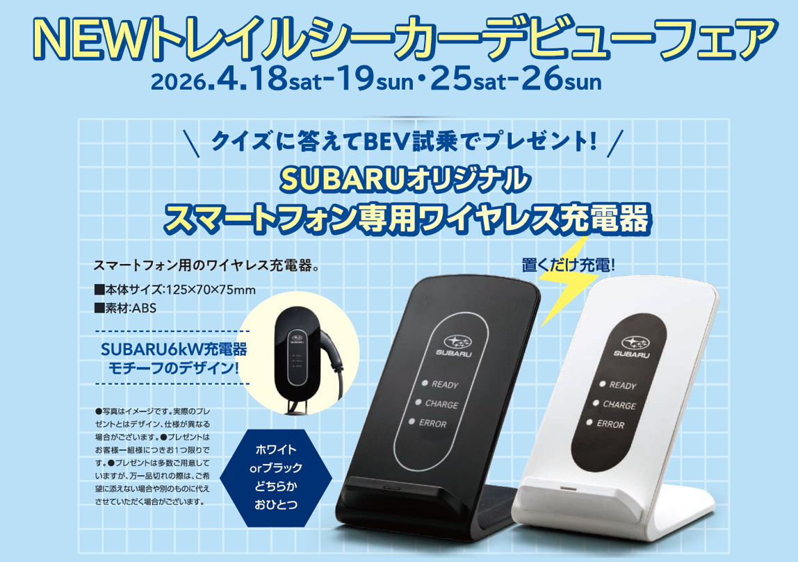 期間中、クイズにご回答いただきBEVにご試乗していただいた方に、なんとワイヤレス充電器プレゼント!※