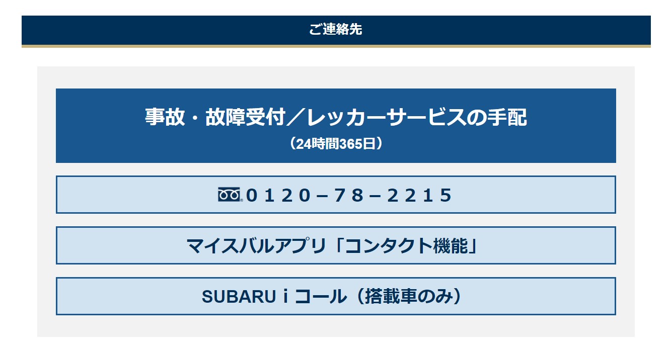 急な事故やトラブルの場合は、SUBARU安心ホットラインまでご連絡ください。