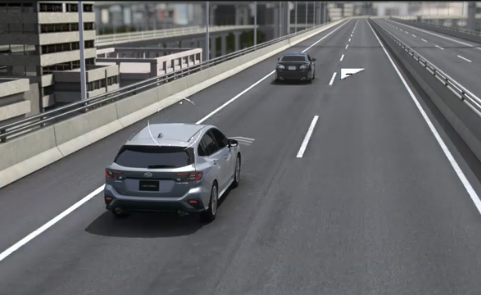 アイサイトXを作動させて高速道路や自動車専用道路を約70 km/h~約120 km/hで走行中、ウインカーレバーを操作すると、ウインカーが点滅している方向に車線変更を行うようにハンドル操作をアシストします。