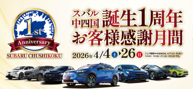 スバル中四国誕生1周年お客様感謝月間