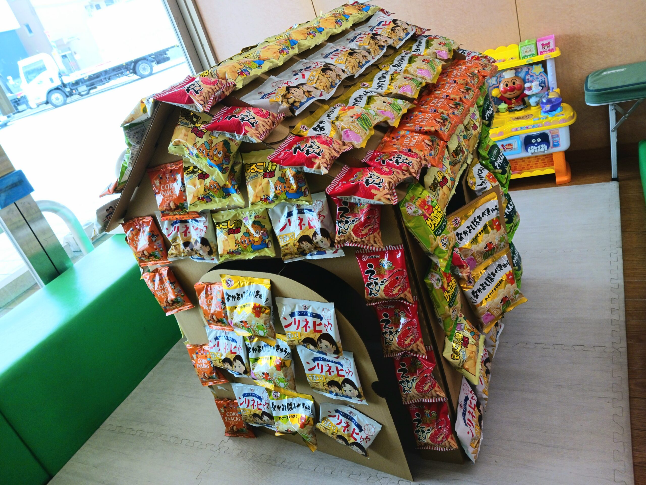 サービス工場のキッズスペースにお菓子の家を設置しております