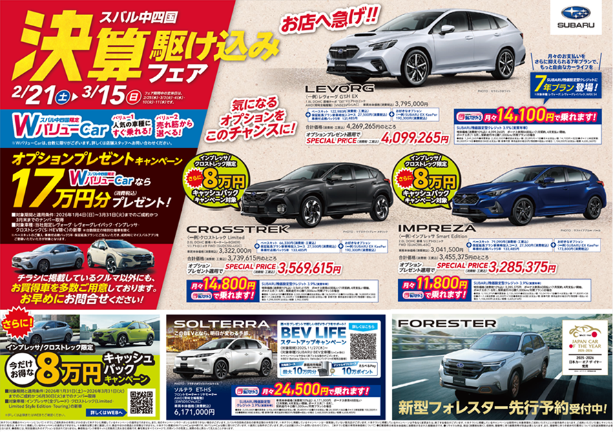 スバル中四国決算駆け込みフェア