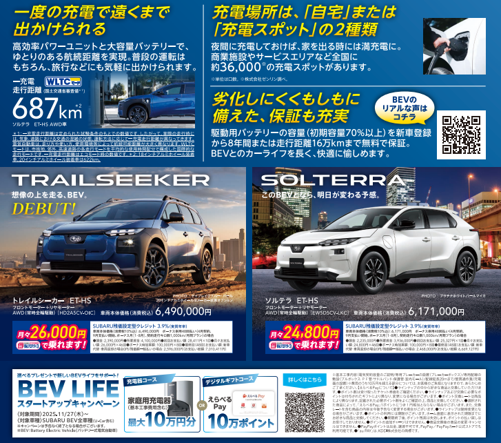 新しくSUBARUのSUVとして仲間入りした本格的 電気電気自動車