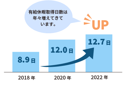 一部を除き、基本的に連続した週休2日の定休日制度を導入。店舗全体が休みなのでしっかりと休めます。また年に3回(GW休暇、夏季休暇、年末年始休暇)大型連休があるので、家族や友人との旅行を愉しんだり、帰省したりするスタッフも多くいます。