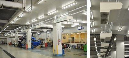 車の出入りがあり、空間が大きいサービス工場は、一般的には冷暖房