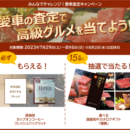2023年08月04日(金) 【キャンペーン情報】愛車を無料で査定して、”高級お肉”を当てよう!
