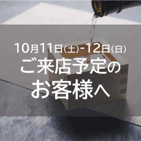 2025年10月09日(木) 10月11日(土)・12日(日)ご来店予定のお客様へ